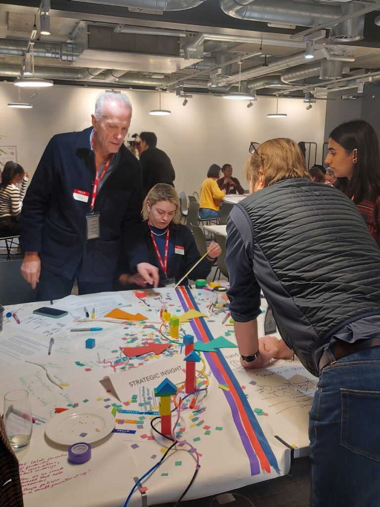 When our event participants arrived, we asked them to choose a lens through which to explore multigenerational practice and placemaking. For these lenses, we borrowed some terms from the Arup lexicon including: specialist knowledge, efficient delivery, strategic insight and knowledge transfer. We also included the lens of social value. Interestingly, participants gathered round tables in clusters, rejecting the lens of efficient delivery. We let them and concentrated on the other four lenses.